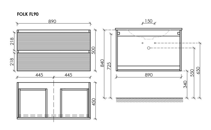 Тумба подвесная с двумя выдвижными ящиками с доводчиками скрытого монтажа