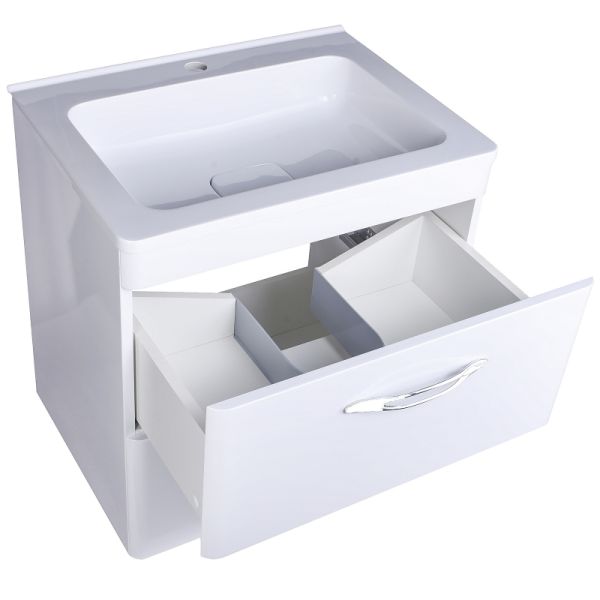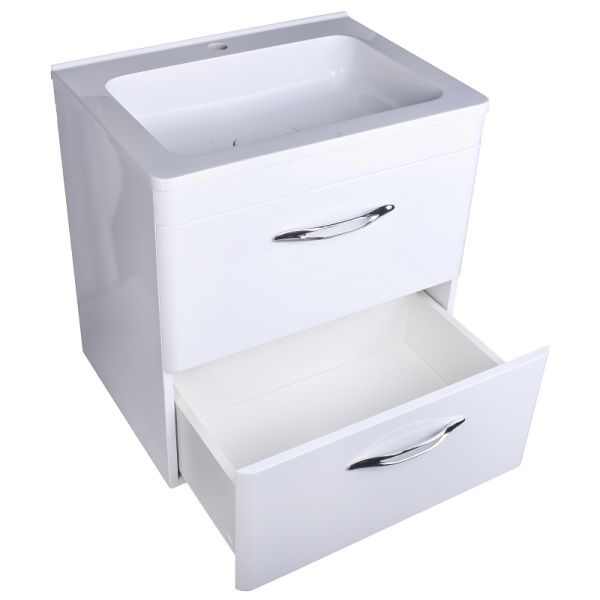 Тумба подвесная под раковину Style Line "Каре 60" СС-00002268 (2 ящ.) Люкс белая, PLUS