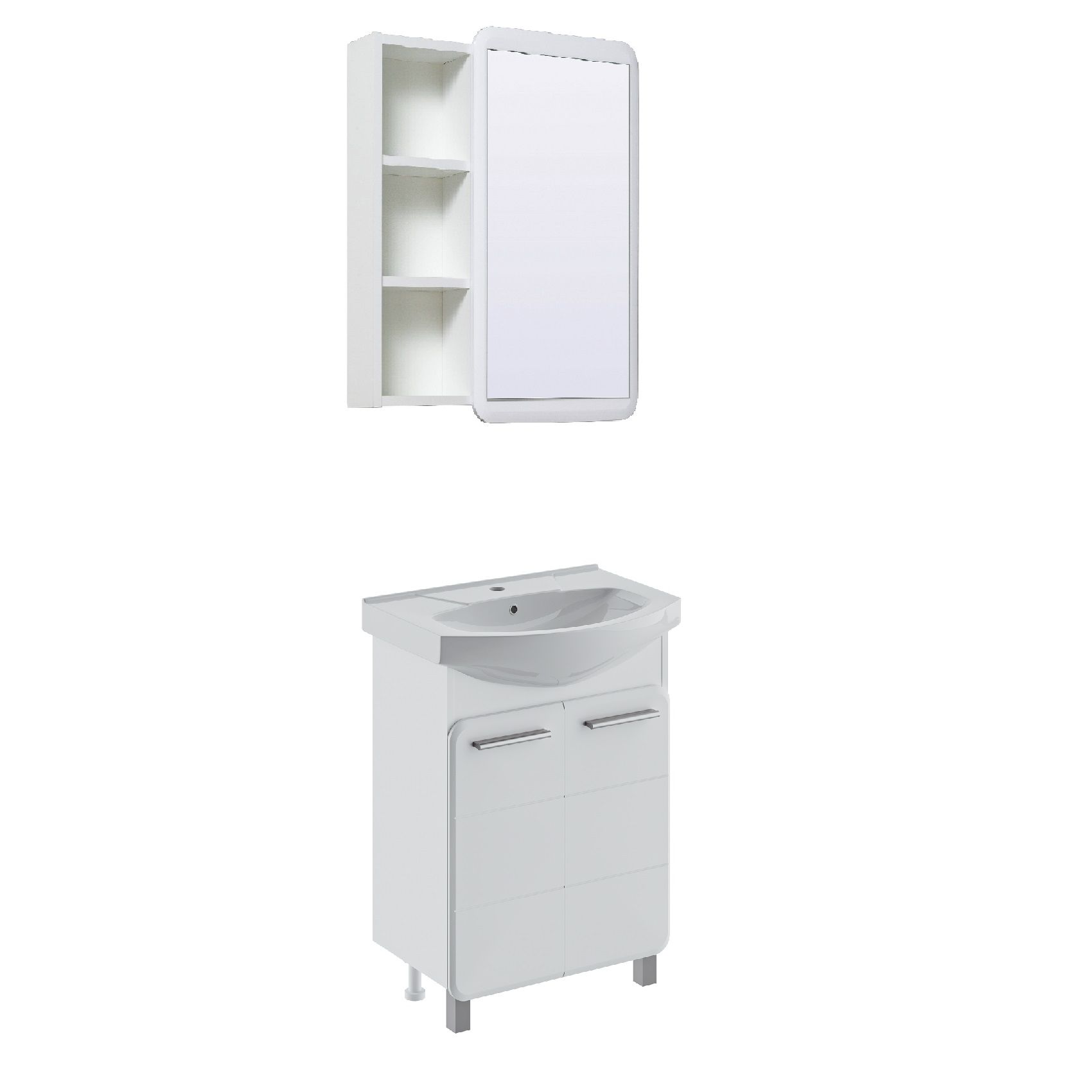 Тумба под раковину ЭРИКА - современный и стильный дизайн в оформлении ванной комнаты. Тумба под раковину ЭРИКА (напольная), выполненная в белом цвете с глянцевым покрытием, инкрустированная квадратной фрезеровкой на фасадах, превосходно украсит любой интерьер ванной комнаты. Тумба в ванную комнату имеет две распашные дверцы и одну встроенную полку. В комплекте к тумбе идут 2 ручки, петли со встроенным доводчиком, 2 хромированные и 2 пластиковые ножки. Мебель для ванной RUNO - красота и практичность в мелочах!