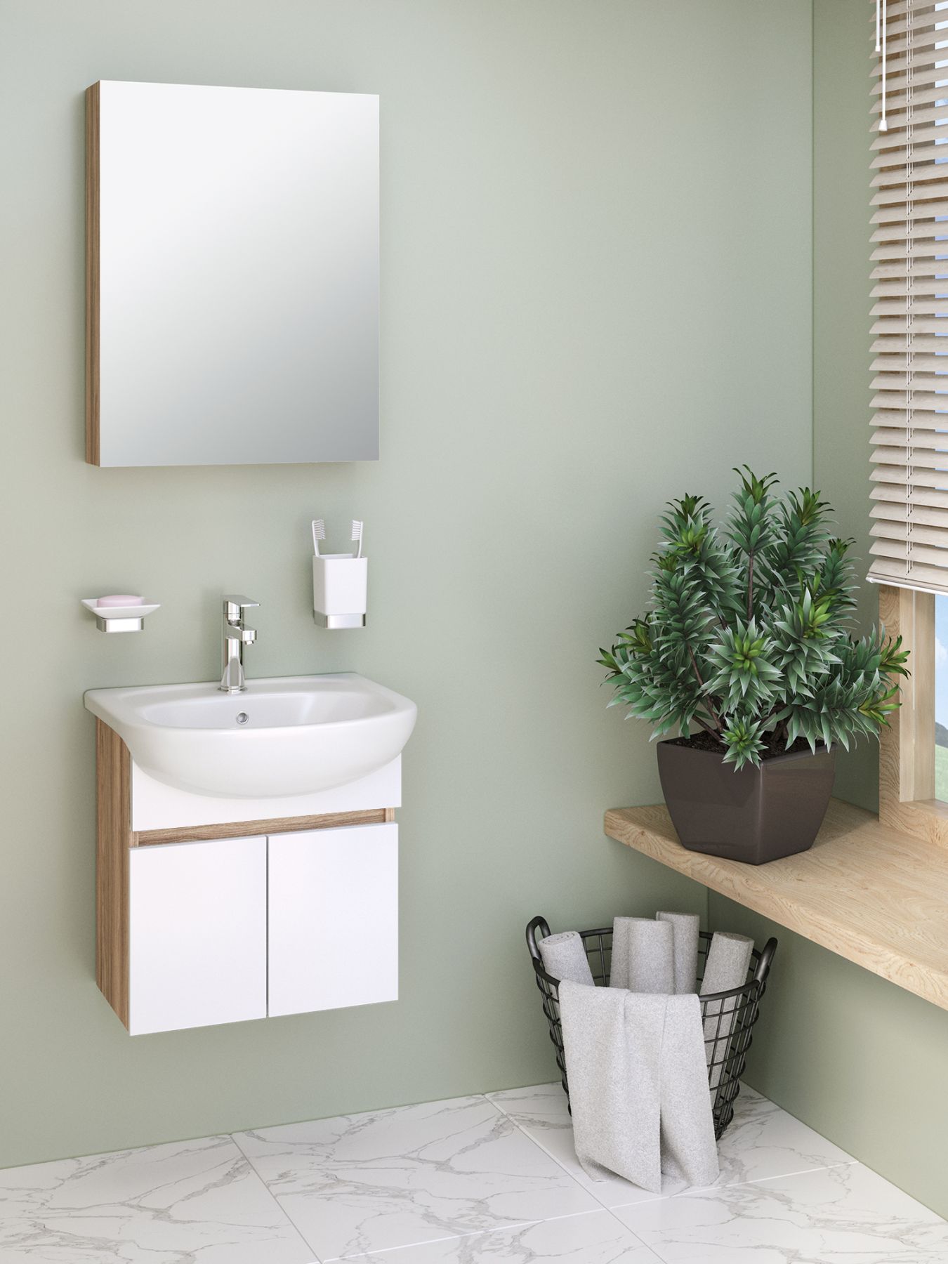 Тумба под раковину для ванной RUNO ЛАДА - модное и оригинальное решение для бюджетного оснащения ванной комнаты. Коллекция мебели ЛАДА выполнена в цвете - блэквуд/белый. Тумба под раковину оснащена двумя распашными дверцами, каждая дверца укомплектована двумя петлями, верхняя с доводчиком, нижняя без доводчика. К тумбе подходит керамическая раковина "Уют" (500*415 мм). Раковина глубиной 18 см. Мебель для ванной RUNO - красота и практичность в мелочах!