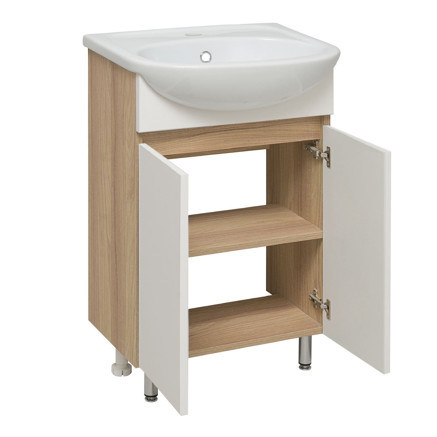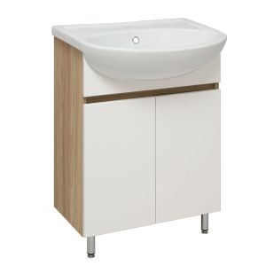 Тумба под раковину RUNO ЛАДА - модное и оригинальное решение для бюджетного оснащения ванной комнаты. Тумба выполнена в стильном цвете - блэквуд/белый . Тумба в ванную имеет две распашные дверцы и одну внутреннюю полку. В комплекте идут петли со встроенным доводчиком, 2 хромированные и 2 пластиковые ножки. К тумбе для ванной ЛАДА подходит керамическая раковина "Уют" (610*470 мм). Раковина имеет глубину 21 см. Мебель для ванной RUNO - красота и практичность в мелочах!