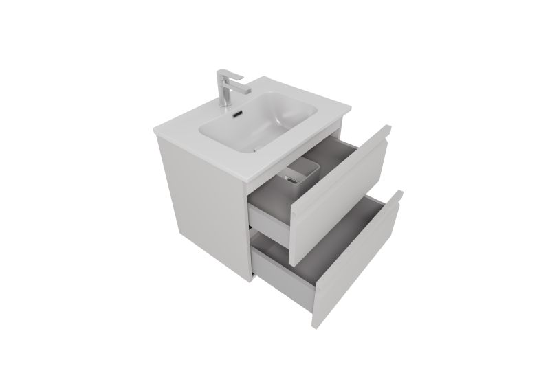 Мебельная раковина: Раковина из 100% санфарфора с идеальной гладкой поверхностью не только выглядит стильно, но и обеспечивает легкость в уходе. Несмотря на компактную глубину, раковины обладают достаточно вместительной чашей, предотвращающей разбрызгивание воды.