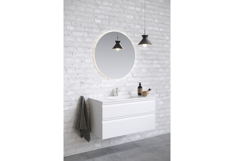 Качественные материалы: Корпус изготовлен из влагостойкого ЛДСП, фасады из ЛМДФ с последующей покраской в 5 слоев с технологией УФ-отверждения, тумба устойчива к воздействию влаги и легко чистится.