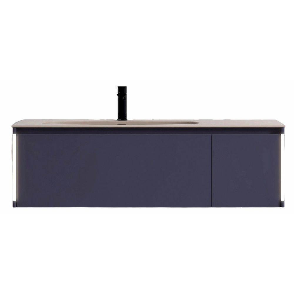 Тумба с раковиной для ванной комнаты датского производителя Black&White в габаритных размерах 100x52x36 см.Раковина – столешница асимметричной конфигурации с широкой чашей и расширенным местом для хранения ванных принадлежностей выполнена из не пористого искусственного камня Corian и оснащена донным клапаном хромированного цвета.Тумба производится из девятислойной фанеры и окрашена влагостойкой эмалью глубокого синего цвета.Зона хранения оснащена одним выдвижным ящиком с высоким фасадом, механизм открывания – UniHopper с доводчиками.Важной особенностью является контурная диодная подсветка, которая расположена справа и слева от фасада, установленная на торцы корпуса.Она включается автоматически при приближении человека с расстояния 3-х метров и гаснет спустя 30 секунд после того, как Вы покинули помещение. U 945 – продукт разработанный датскими дизайнерами, в котором собраны все тенденции актуального мебелестроения для комфортного использования зоны умывания, а также наполнения ванной комнаты комфортом и уютом.