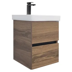 Тумба с раковиной Comforty Дартфорд 00-00013694 45 см Темное деревоМатериал корпуса и фасада тумбы: влагостойкое ЛДСП. Вариант цвета корпуса и фасада тумы: Дуб темно-коричневый. Подвесная тумба-умывальник с двумя ящиками оборудованными направляющими плавного закрывания. В комплекте керамическая раковина Адриана 45. Тумба подготовлена для подключения коммуникаций сзади и снизу