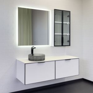 Тумба-умывальник для ванной Comforty Онега-140 белый матовый с белой столешницей с раковиной Comforty 21004