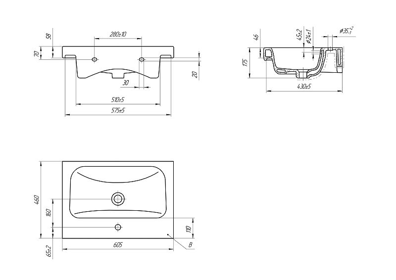 Стильная раковина лаконичной прямоугольной формы шириной 60 см подходит для установки на столешницу. Гармонично сочетается с тумбами для санузлов.