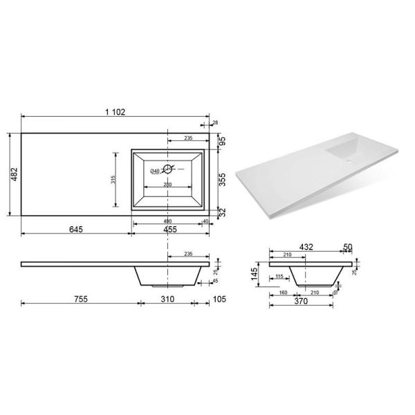 Умывальник Style Line Даллас/Эстетика СС-00000439 1100*480, правый купить