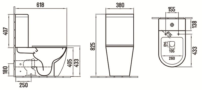 Размеры (ШхВхД): 380x825x618 мм.