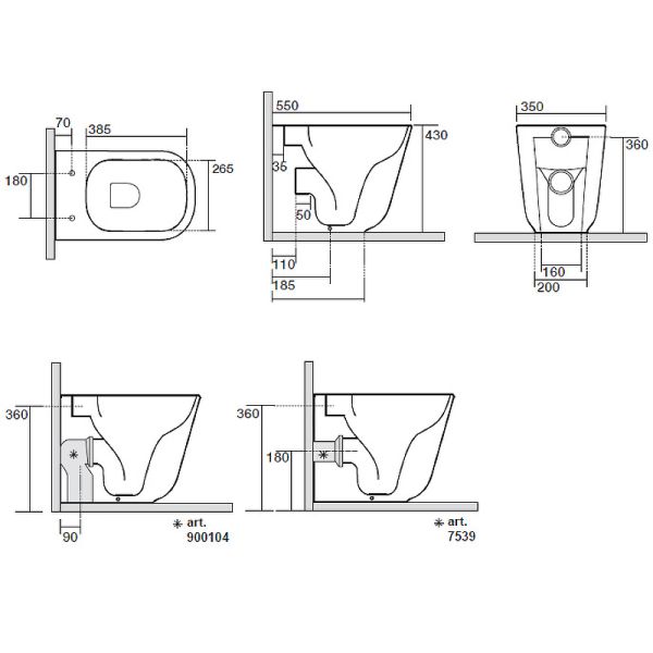 Прилегание унитаза к стене:вплотную