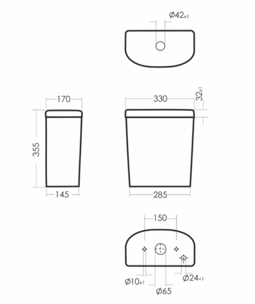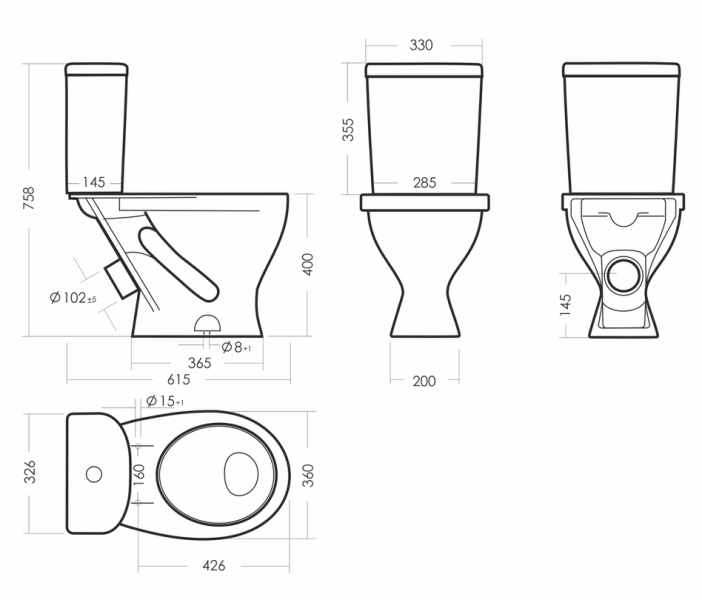 Размеры унитаза-компакта: 360 x 615 x 758