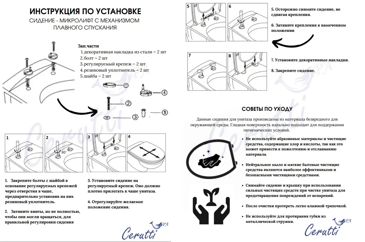 В комплекте присутствует легкосъемное сидение с крышкой, оснащенное системой микролифт (для плавного и бесшумного опускания). Крепления к чаше выполнены из стали, а само сидение - из долговечного полимерного материала – дюропласта с антибактериальным покрытием. Снятие осуществляется одним нажатием кнопки.Смыв в унитазе происходит по принципу TORNADO – поступающая из отверстия в чаше вода мощным потоком закручивается (эффект водоворота) и полностью очищает всю внутреннюю поверхность чаши. При этом воды требуется на качественный смыв в небольшом количестве.Внимание! Производитель оставляет за собой право вносить изменения в конструкцию и комплектацию моделей без предварительного уведомления!