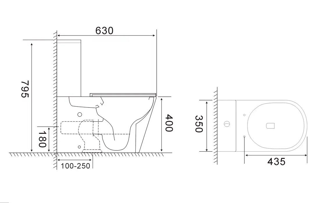 Прилегание унитаза к стене:вплотную
