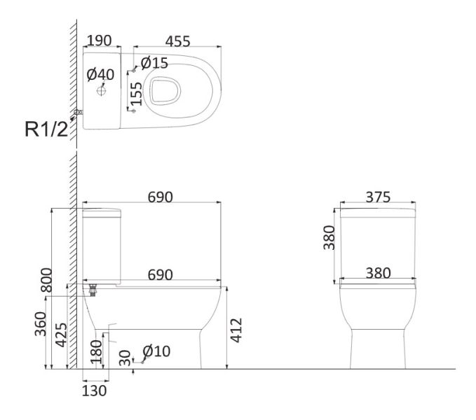 • Прилегание унитаза к стене: