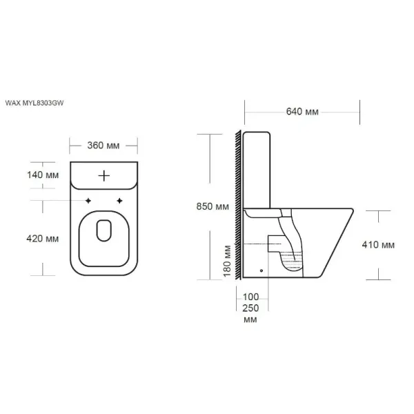 Унитаз-компакт безободковый Milleau Wax 8303, крышка микролифт, цвет белый