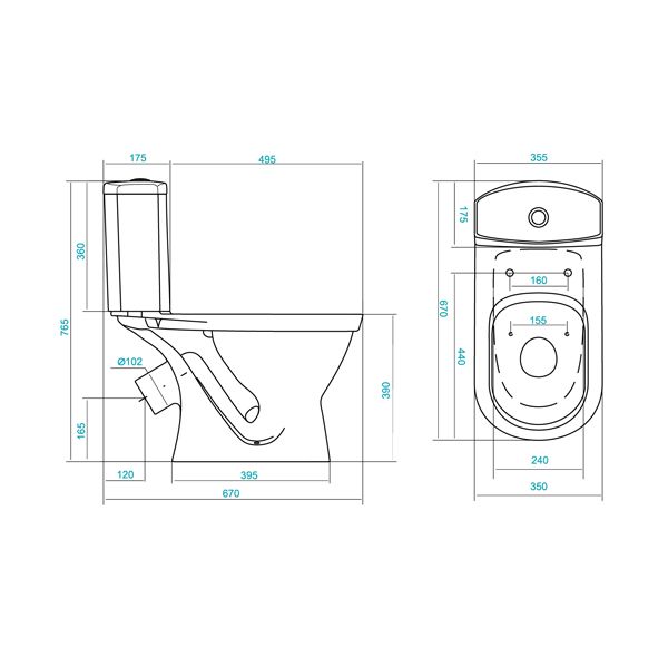 Унитаз напольный Santek - Алькор с сиденьем дюропласт с диагональным выпуском «Антивсплеск», с двухрежимной арматурой Уклад.