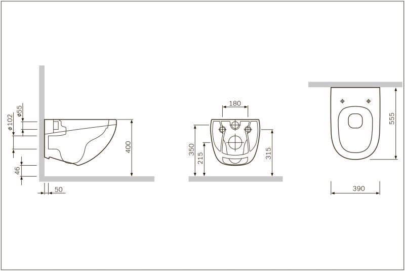 - Идеальное прилегание к стене, скрытые крепления и фановый выход;