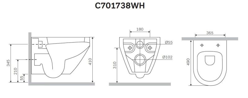 Прилегание унитаза к стене:вплотную