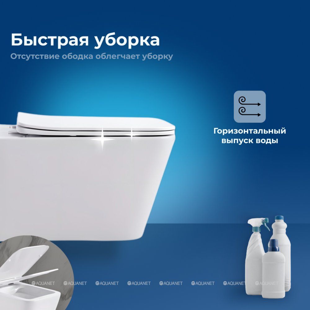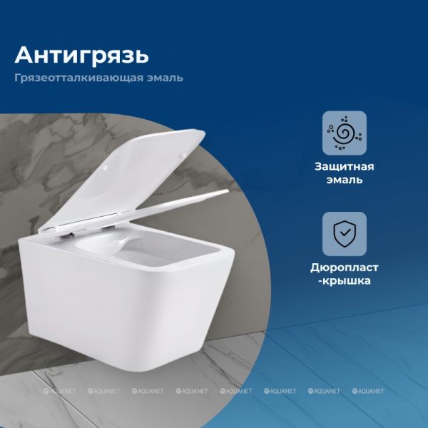 Современный подвесной унитаз Aquanet Rimless Tavr создан для компактных ванных и туалетных комнат благодаря своим габаритам 360х525х290 мм. Изготовлен из белой керамики, а в комплекте идет удобная крышка-сиденье из дюропласта в тон устройству. Подвесная конструкция экономит место, делает пространство более технологичным и комфортным за счет размещения смывного механизма в стене. Снаружи вы устанавливаете аккуратную кнопку смыва с плавным нажатием. Дополнительные функции — режим антивсплеск и безободковое решение. В плане дизайна прямоугольный унитаз будто создан для стиля модерн, лофт, минимализм, хай-тек, эклектики и Скандинавии. Ваша задача — приобрести в дополнение хорошую инсталляцию для смыва, так как в комплекте с унитазом она не продается.