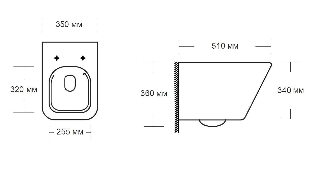 унитаз подвесной безободковый - смыв Tornado, сиденье дюропласт soft-close