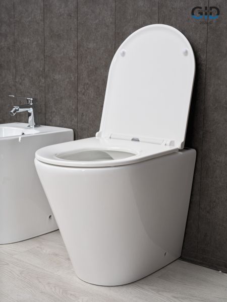 Cortado — стильная коллекция округлых унитазов и биде со скосом к низу. Испанское качество гарантирует надежность, а европейская сертификация подтверждает их качество. Приставной безободковый унитаз GiD TRS-263 — стильная напольная модель с горизонтальным выпуском предназначена для установки со скрытым бачком. Выполнен из высококачественной керамики белого цвета с глянцевым покрытием, что обеспечивает долговечность и уникальный внешний вид. Крышка унитаза изготовлена из прочного дюропласта и оснащена функцией микролифта, которая обеспечивает плавное и бесшумное опускание.