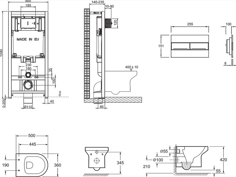 Унитаз с инсталляцией Jacob Delafon Elite E21742RU-00 с сиденьем Микролифт и клавишей смыва