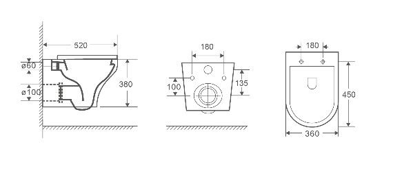 • Прилегание унитаза к стене: