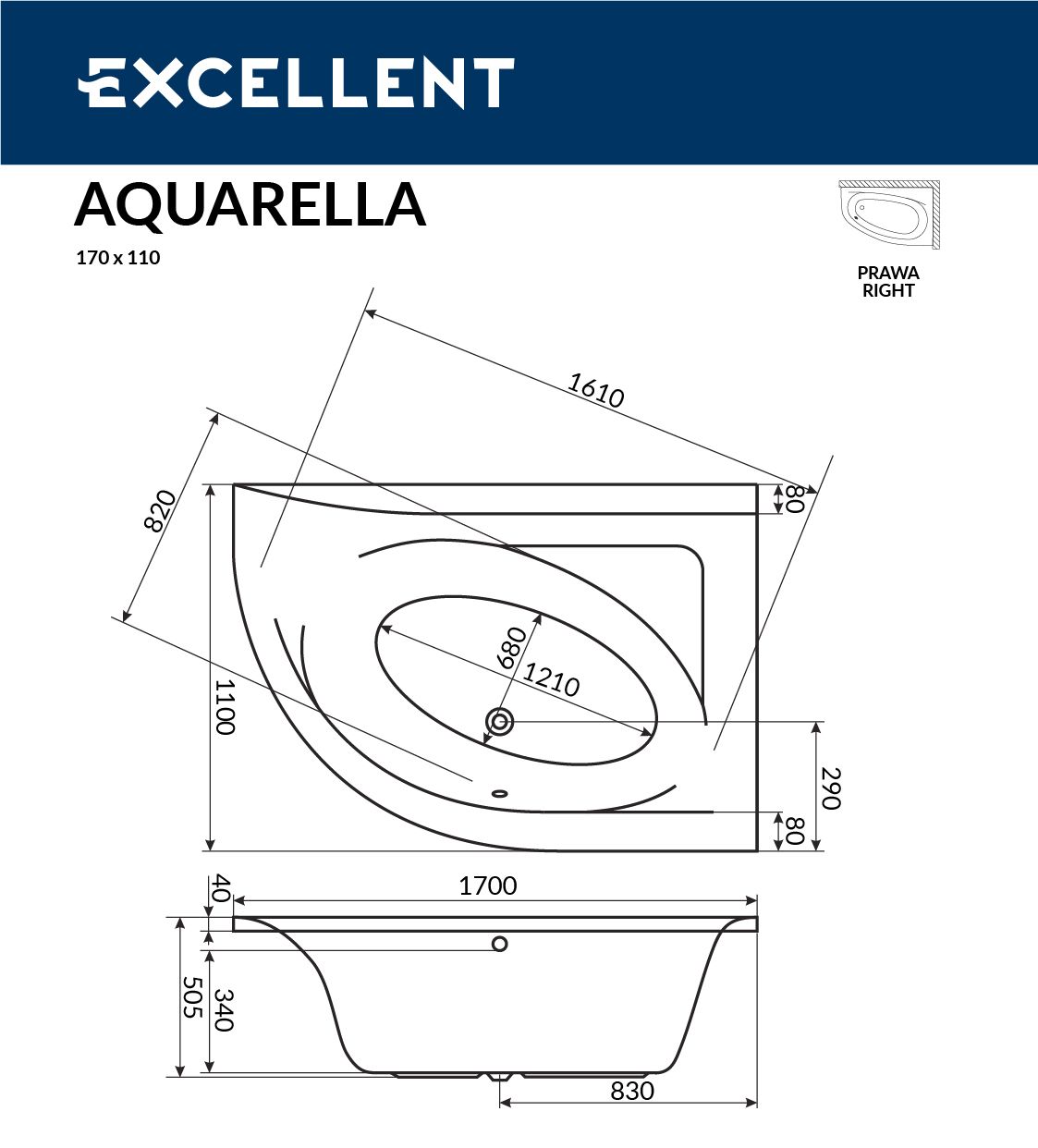 Ванна акриловая EXCELLENT Aquarella 170x110 (правая) Ванна от Польского производителя отличающаяся высоким качеством и выдающимся внешним видом эфектно впишется в любую ванную комнату. Долгий срок службы подтверждается высоким гарантийным сроком ванн Excellent