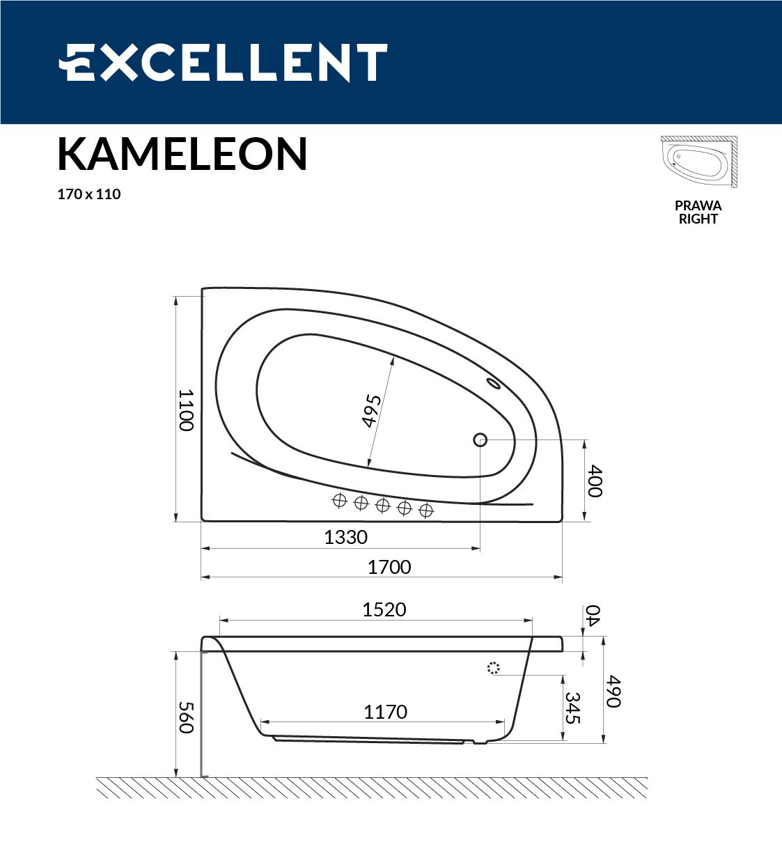 Ванна акриловая EXCELLENT Kameleon 170x110 (правая) Ванна от Польского производителя отличающаяся высоким качеством и выдающимся внешним видом эфектно впишется в любую ванную комнату. Долгий срок службы подтверждается высоким гарантийным сроком ванн Excellent