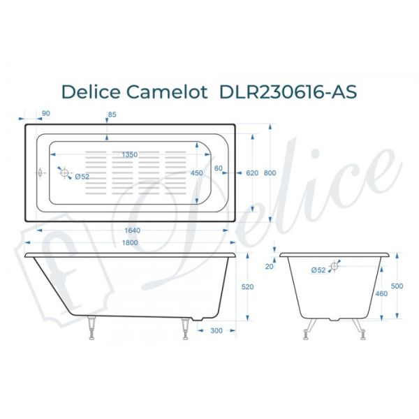 Ванна чугунная Delice Camelot DLR230616-AS 180х80 с антискользящим покрытием купить