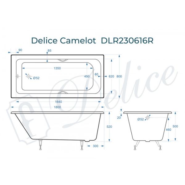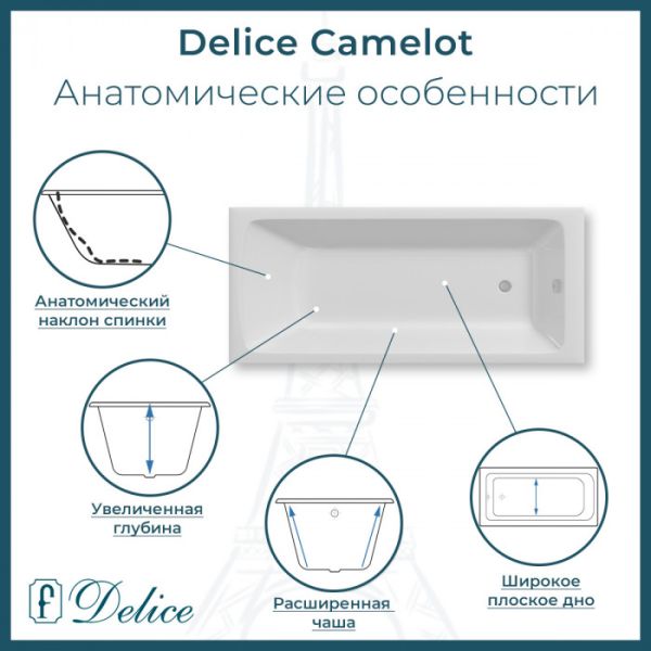 Ванна чугунная Delice Camelot DLR230616R 180х80 сс отверстиями под ручки купить