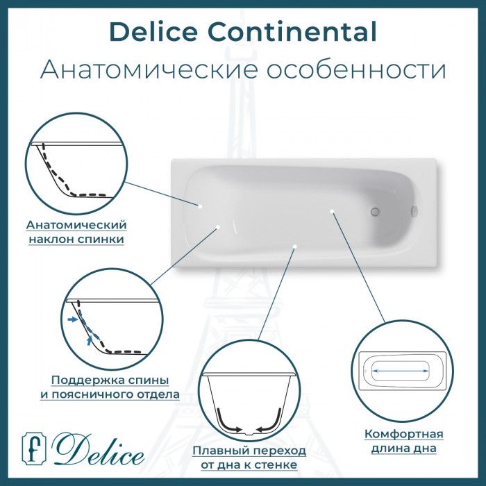 Ванна чугунная Delice Continental DLR230626-AS 160х70 с антискользящим покрытием купить