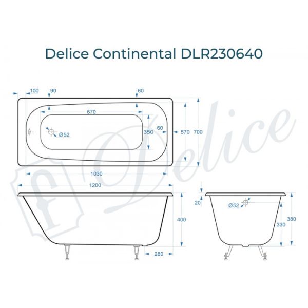 Ванна чугунная Delice Continental DLR230640 120х70