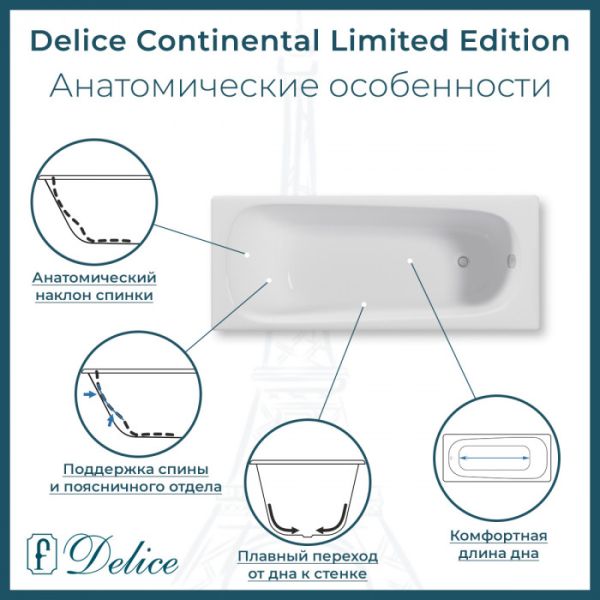Ванна чугунная Delice Continental Limited Edition DLR230644 165х70 купить