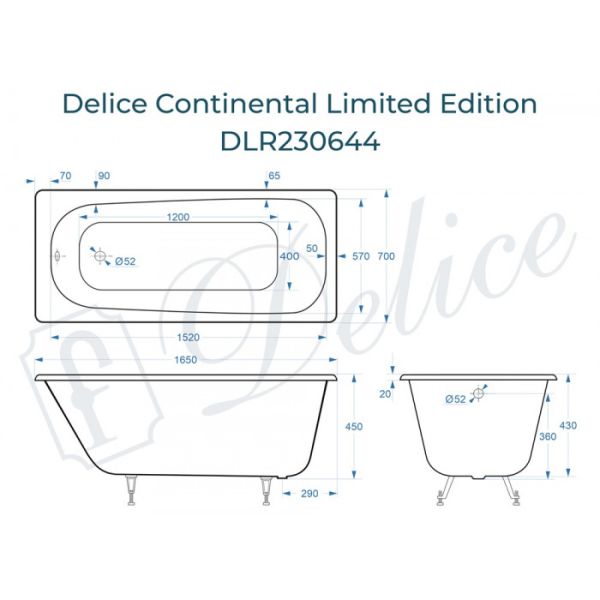 Ванна чугунная Delice Continental Limited Edition DLR230644 165х70