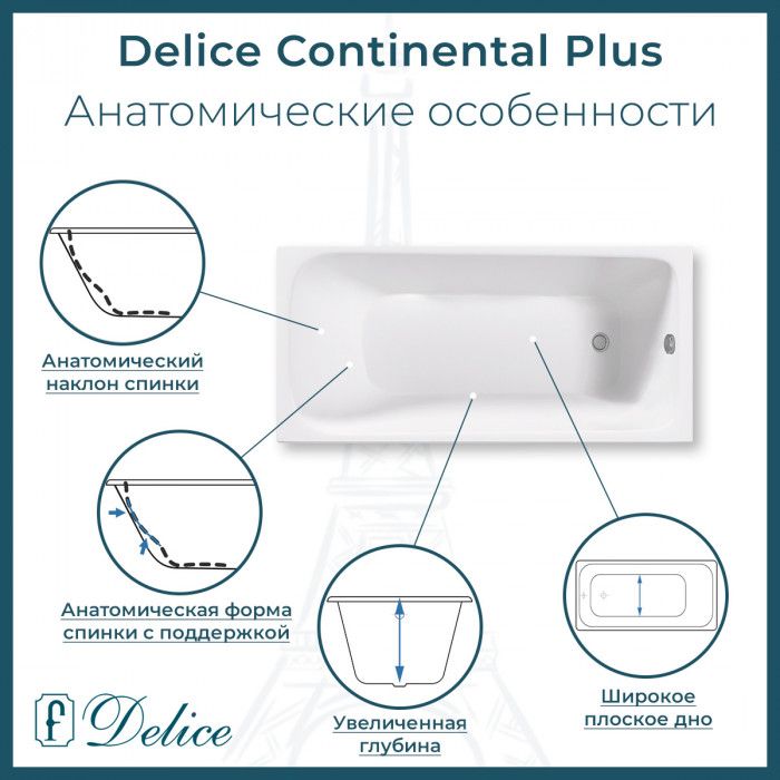 Чугунная ванна Delice - это отличный способ отвлечься от повседневных проблем и избавиться от стресса во время принятия водных процедур. Основным преимуществом ванны из чугуна является простота в уходе и устойчивость эмали ванны перед большинством механических повреждений.Прямоугольная форма ванны идеально подойдет к любому интерьерному решению. Пристенный монтаж - наиболее традиционный вид установки. Оптимальная глубина составляет 46,2 см, что позволяет принимать ванну с максимальным комфортом. Ванна Delice выполнена со строгим соблюдением всех актуальных элементов современного стиля. Ванны Delice производятся с исключительными стандартами качества, по сертифицированным технологиям, с использованием надежных безвредных материалов. Чугунна ванна Delice сделает любое дизайнерское решение не только практичным в плане использования, но и стильным с точки зрения эстетики.
