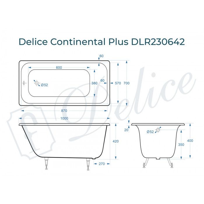 Ванна чугунная Delice Continental PLUS DLR230642 100х70