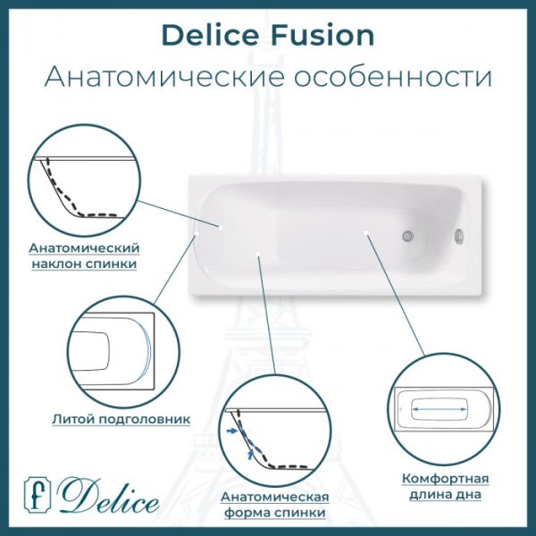 Ванна чугунная Delice Fusion DLR230647R 170х70 с отверстиями под ручки купить