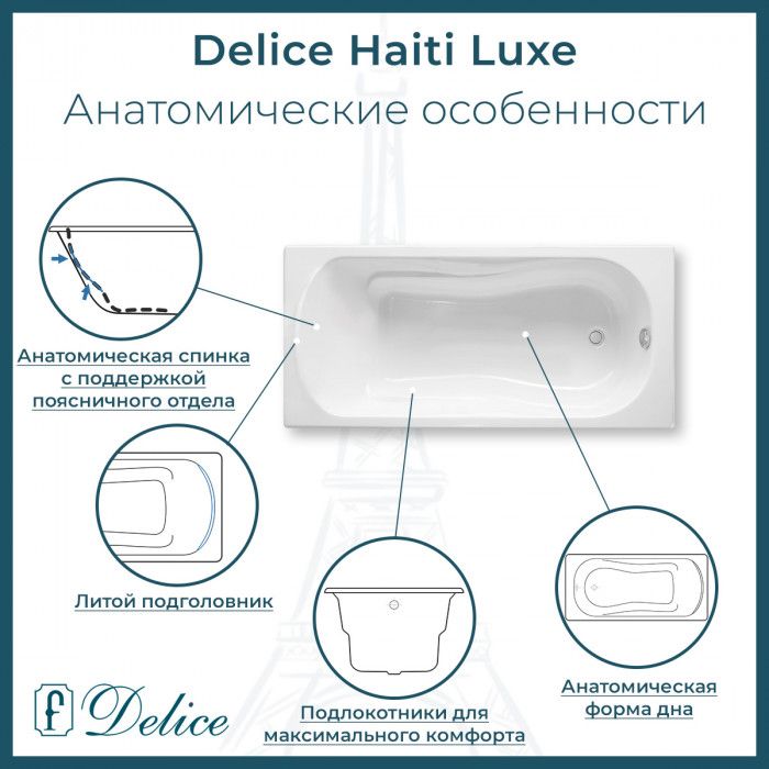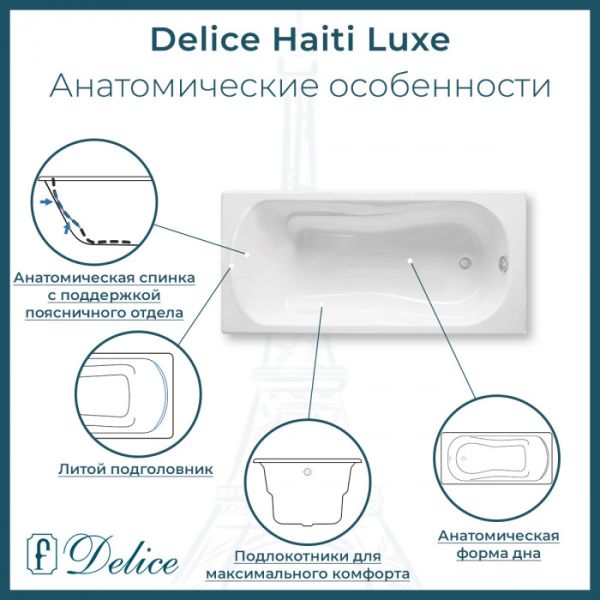 Ванна чугунная Delice Haiti Luxe DLR230638R-AS 170х80 с отверстиями под ручки и антискользящим покрытием купить
