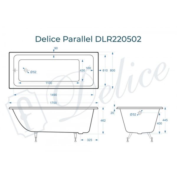 Ванна чугунная Delice Parallel DLR 220502 170x80см белый