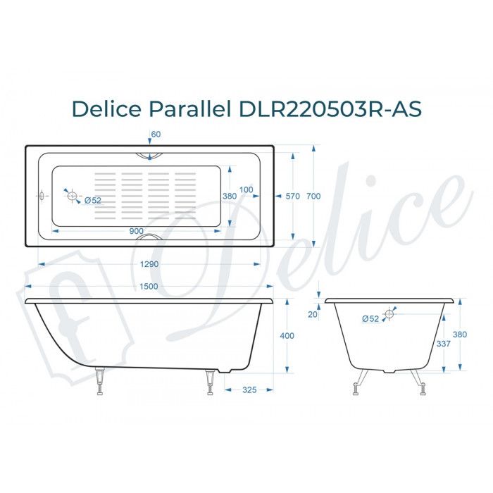 Ванна чугунная Delice Parallel DLR220503R-AS 150x70 с ручками