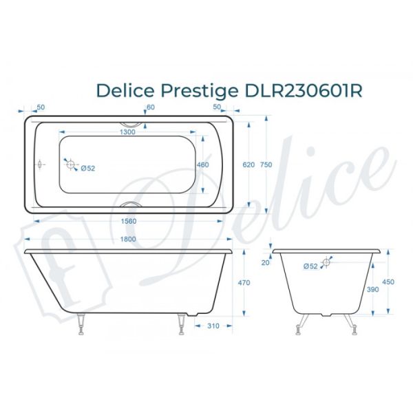Ванна чугунная Delice Prestige DLR230601R 180х75 с отверстиями под ручки купить