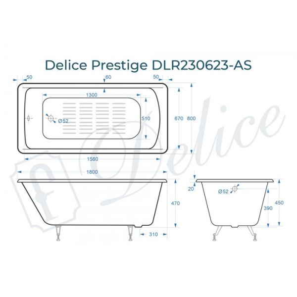 Ванна чугунная Delice Prestige DLR230623-AS 180х80 с антискользящим покрытием купить