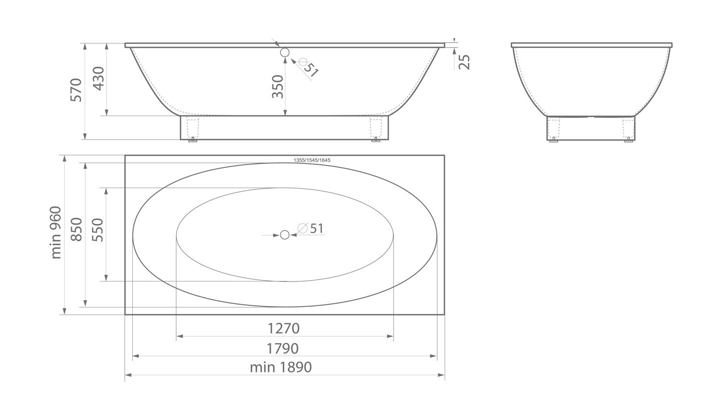Ванна из искусственного камня AquaStone Мальта 189x96см белый