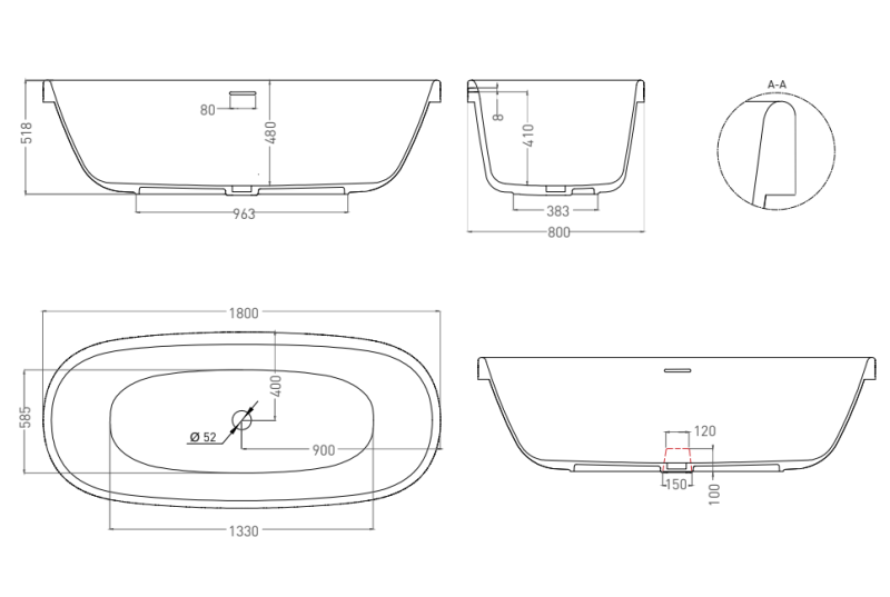 Отдельностоящая GRECA IN сохранила стандартную глубину, став при этом ниже. Благодаря такой конструкции заходить в ванну теперь ещё удобнее.