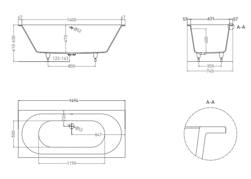 ORNELLA AXIS KIT 170 – самая универсальная ванна Salini из литого камня.Она предназначена как для полного или частичного встраивания, так и для пристенной или угловой установки. Ванна характеризуется одинаковым уклоном бортов и расположенными посередине сливом-переливом и донным клапаном. Название модели Axis («Ось) отражает характерную симметрию ванны во фронтальной проекции.По индивидуальному запросу ванны из материала S-Sense могут быть оснащены любым количеством декоративных экранов для установки у стены или в углу. Экраны, изготовленные из того же материла, что и ванна, придают изделию законченный вид без видимых стыков и соединений. Преимущества