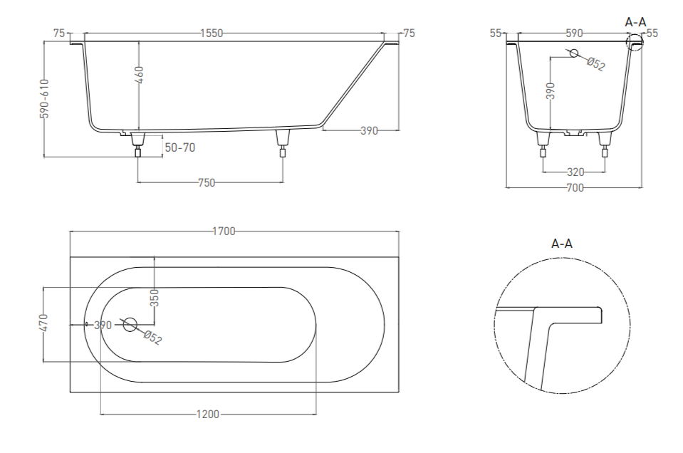 - Регулируемые ножки (ванна с экранами по высоте НЕ регулируется)