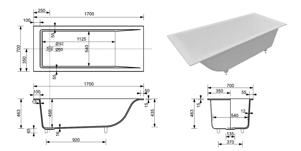 Стандартные размеры, см:170x70