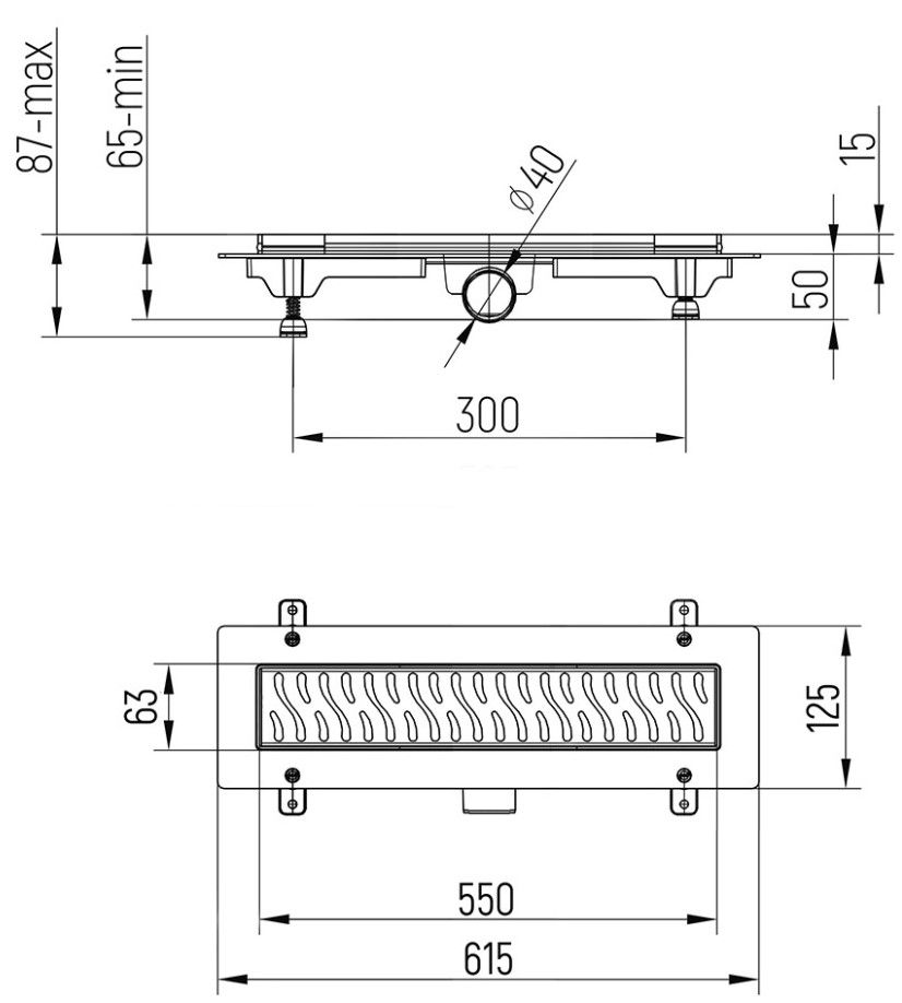 Водоотводящий желоб ALPEN - MCH 550mm Harmony глянец, боковой слив D40