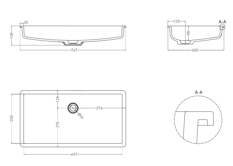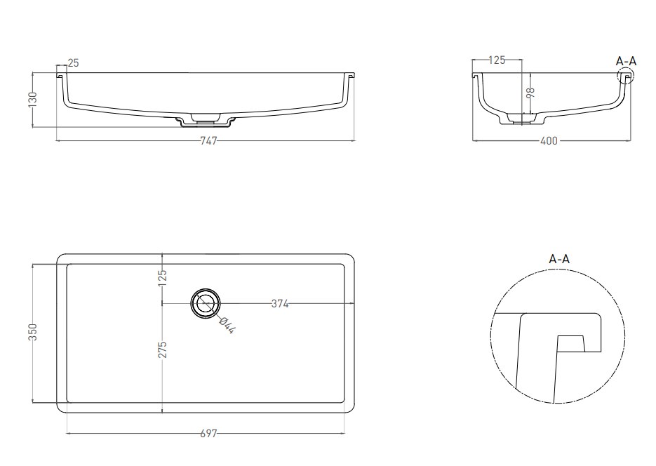 Встраиваемая раковина Salini Marea 10 S-Stone 1802210MRF 75см RAL